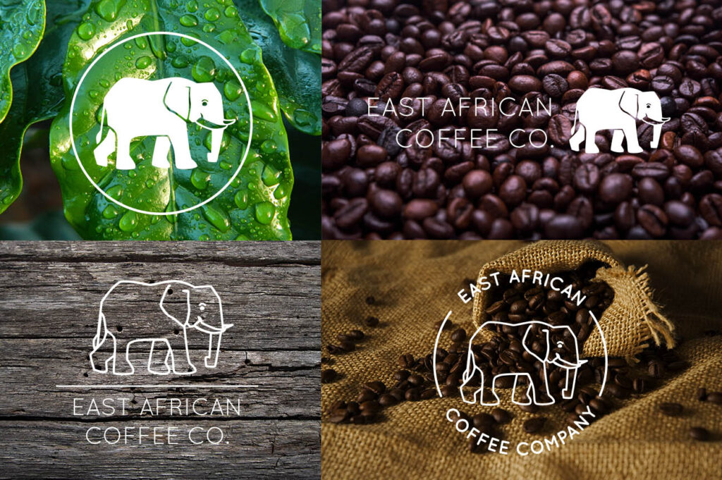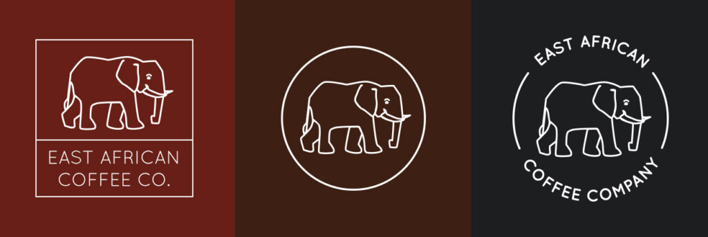 The client and I chose an elephant as the symbol for the brand because they’re a symbol of sorts for Eastern Africa. They’re strong, steady, dependable, intelligent, and majestic animals, so what’s not to love? We also considered giraffes and mountain gorillas, but settled on the elephant because of its outstanding cultural connotations. They’re bold, kind of like a good cup of coffee.